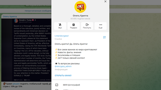 В Telegram огромное количество каналов с криптоновостями. Один из таких — «Опять Крипта», на который подписано почти 45 тысяч человек. Подача стандартная: новости рынка, мнения, «эксклюзивы», свежий контент 24/7. На первый взгляд это просто информационный ресурс. Но если внимательно посмотреть на подобные каналы, становится понятно, что многие из них работают не ради новостей, а ради монетизации аудитории. И именно здесь кроется основной риск. Если вы хотите ориентироваться на более прозрачные источники...