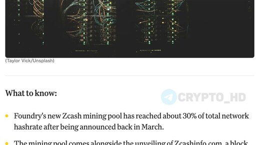 Новый пул уже контролирует ~30% хешрейта сети Zcash. Foundry – американская компания и один из крупнейших игроков в индустрии. В BTC-майнинге их пул держит около 23% глобального хешрейта. Ранее: анонс...