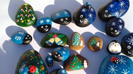 Новогодние магниты на холодильник, раскрашенные камни.