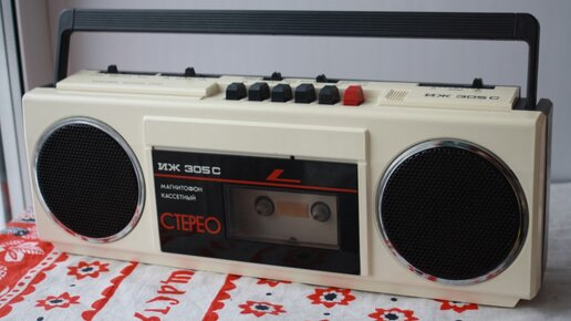 Я довольно прохладно отношусь к таким магнитофонам, мне нравятся вещи постарше. Когда они были популярны я был юн и денег у меня на такие игрушки не было. А затем они мгновенно устарели, уступив пальму первенства бумбоксам с возможностью прослушивать СД диски. Но этот "ИЖик" мне очень приглянулся. В идеальном сохране, с хромированными ободками динамиков. Весь такой светленький и истошно орущий. Это стереофонический кассетный магнитофон "ИЖ-305С", который с 1985 года выпускал Ижевский мотозавод. Такая вот конверсия...