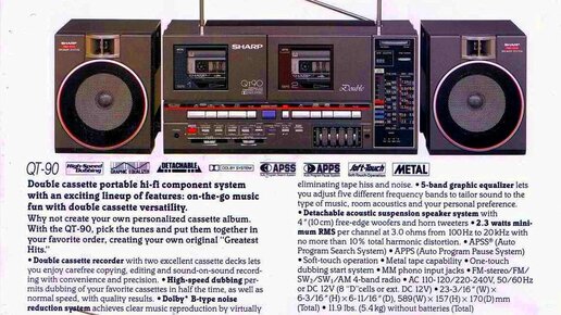 Всем привет! Сегодня будем обозревать одну из самых лучших магнитол в среднеразмерном классе. Одними из самых лучших магнитол в мире, по количеству функционала и качеству звука, считаются устройства от японской компании Sharp Corporation. Знаменитая серия QT является линейкой двухкассетных среднеразмерных магнитол от компании Sharp. Среднеразмерные магнитолы получились весьма удачными, и были позитивно восприняты рынком Японии. Впоследствии, производство было налажено и для экспорта в другие страны...