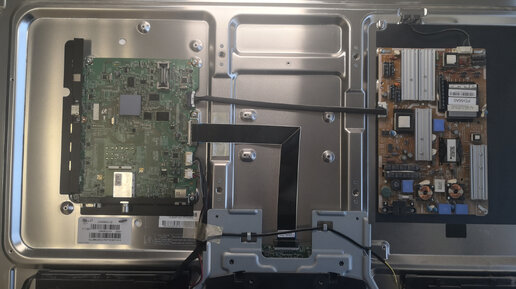 Всем здравствуйте! Сегодня у нас на ремонте Samsung UE40D5520RW с диагнозом - невозможно слушать 😂 По факту так и есть, звук рычит, хрипит, трещит, бубнит и многое другое. Разбираем будем посмотреть. Состав типовой. Блок питания bn44-00422b Майн плата bn41-01660b Походе когда-то была циклическая перезагрука... Паяна микросхема nand k9gag08uoe Но у нас проблема ни там ни там, а вот тут. Собственно под этой железячкой находится сам "хрипун" , а рядом с ним "пискун" - ВЧ динамик. Отклеиваем железячку и видим вот такого красавца...