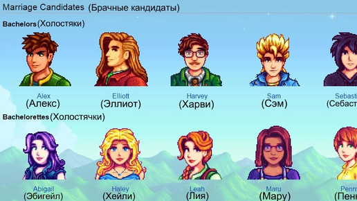 Поговорим о браке...    Брак становится возможным после достижения статуса лучшей(го) подруги(друга) (10 сердец) с односельчанинами. Кандидаты в браке показаны и могут быть выбраны вне зависимости от вашего пола. Завязать романтические отношения поможет особый букет(продается в сельпо Пьера). Букет продается только после достижения 8 сердец с кандидатом в брак.    Вы должны подарить букет для того, чтобы продвинуться дальше 8 сердец с кандидатом в брак. Можно подарить несколько НПС букеты за один раз, пока условия не будут выполнены никакие действия не повлияют на развитие отношений...