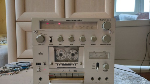 Marantz CRS-6810.Марантц бывает разный и даже как бы магнитольного формата или когда взяли нормальную протяжку от кассетной деки и запихнули в компактный корпус, в окружение тюнера и трех ватного усилителя на микрухе.😎 Получился некий Франкенштейн, прямиком из Японии, который видимо или на радостях или по тупости, после получения и распаковки сразу ткнули в 220 и естественно кроме аромата жареной обмотки трансфонматора, ничего не получили, а может это сработал встроенный ароматизатор? 😂 Ну что, будем оживлять, меняем трансформатор, уже сразу на 220...