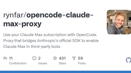 🛠🚀 OpenCode Claude Max Proxy: используйте подписку Claude Max в сторонних IDE и агентах