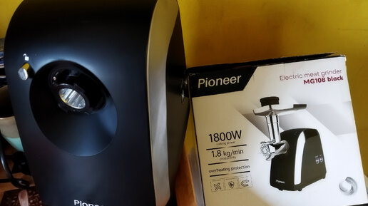 Мясорубку Pioneer MG108 я приобрела на Озон по распродаже в черную пятницу, обошлась она мне в 2989 рублей. Мощность модели 1800 Вт - этого хватает, чтобы справляться с приготовлением фарша в домашних условиях. Сама мясорубка черная со вставками металлического цвета, смотрится привлекательно, кнопки на черной панели с синей подсветкой. В комплект входят 3 решетки с разным диаметром отверстий, причем после первого же использования и мытья, одна из решеток поржавела, получается, что решетки здесь из ржавеющей стали, надо их сразу насухо протирать и не оставлять высыхать самостоятельно...