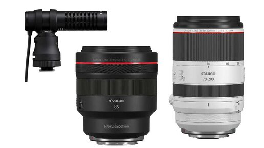 Объективы Canon RF 70-200mm f/2.8 L is, RF 85mm f/1.2 L DS и микрофон DM-E100