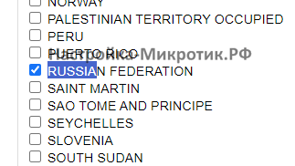 Когда нужно ограничить подключение к сервису по стране, например разрешить работу PPP и WEB сайта только из России, Беларуси и Казахстана, а бывает запретить выход в Интернет вне российских адресов (и наоборот), на помощь приходят готовые адрес-листы. 1. Список адресов России