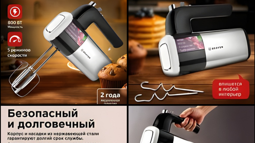 BRAYER BR1302 — это надежный, функциональный и стильный миксер для домашнего использования, который отлично справляется с большинством задач на кухне. Он предлагает отличное соотношение цены и качества, позиционируясь как практичная рабочая лошадка для ежедневного приготовления пищи. 1. Универсальность и комплектация: Наличие двух венчиков и двух крюков разного размера — большое преимущество...