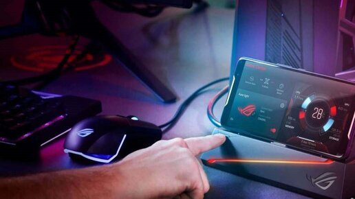 Самый крутой игровой смартфон. Такого количества дополнительных блоков и функционала как у Асус Рог Фон нет ни у кого, и в ближайшее время не появится. Кроме того, что мы имеем ультрамощное железо и жидкостное охлаждение, ASUS придумали две дополнительных док станции, которые превращают девайс либо в переносную консоль, или же в полноценную стационарную. Также, есть роутер, геймпад, при этом, смартфон подключается к телевизору или монитору. За производительность отвечает разогныный процессор Qualcomm...