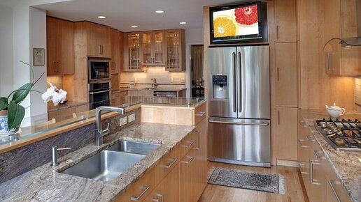 Холодильник нередко вызывает соблазн водрузить на него разные вещи, особенно если кухня небольшая. Так что телевизор «верхом» на холодильнике – не такое уж редкое явление. Конечно, ставить эти приборы друг на друга или нет – дело каждого. Но все-таки следует учитывать некоторые нюансы. Первый – усиливается электромагнитное излучение. Второе – нагрузка на оба устройства становится сильнее. Третье – работая, холодильник вибрирует, а это не лучшее состояние для телевизора. Четвертое – риск, что «крыша» холодильника под тяжестью телевизора продавится...