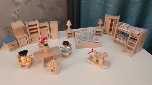 Месяц назад у нас появились два набора. Хочу поделиться с вами впечатлениями от этих игрушек. Я уже писала про эту мебель в подборке новогодних подарков для малышей. Мне нравится качество: края без заноз, поверхность гладкая. Дверки шкафов открываются и не проваливаются, внутри есть стопперы и полочки. Размер игрушек удобный для малыша: самый большой предмет, кровать, - 13 см, самый маленький - ваза, 5 см. Можно приобрести кукол для этих комплектов, есть несколько вариантов с питомцами и аксессуарами: раз, два, три, четыре...