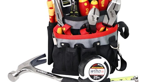 Стартовый набор #Wiha для электромонтажника, куда входят: пассатижи, кусачки, ручной стриппер, тонкогубцы, молоток, рулетка, уровень и
