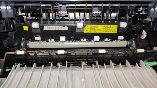 Поступил в ремонт лазерный принтер Samsung SCX-4200. По словам клиента принтер захватывает по два листа бумаги за раз. На принтере напечатано 5703 страницы. Проблема может быть как в тормозной площадке, так и в соленоиде ролика захвата. В нашем случае проблема как раз в соленоиде, а точнее в подвижном контакте соленоида. При отправке документа на печать аппарат сообщает "Замятие 1. Откройте и закройте дверцу", то есть принтер взял один лист и тут же взял второй. Открываем лоток. Видим застрявший лист...