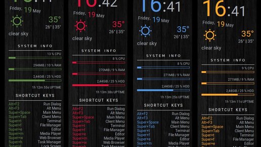 Возможности виджетов Conky для рабочего стола в Linux ограничены только фантазией пользователя. Дело в том, что из виджета можно использовать не только переменные для получения сведений о системе и её состоянии, но и исполнять другие программы (которые мы обычно "вызываем" из терминала). А если вспомнить о возможности использования Python, возможности которого поистине безграничны (благодаря огромному множеству сторонних библиотек для работы с электронной почтой, получения информации из ВК, работы с ботами в Telegram и многого прочего), то и возможности Conky становятся таковыми же...