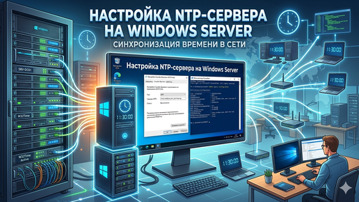 В корпоративной сети время на серверах и рабочих станциях живёт своей жизнью. На одном компьютере часы отстают на 5 минут, на другом спешат на 10. Пользователи получают письма с датой «завтра». Логи разъезжаются. А самое страшное, доменная аутентификация начинает работать с ошибками. Active Directory требует, чтобы разница во времени между клиентом и контроллером домена не превышала 5 минут. Если часы расходятся больше, вход в домен блокируется. Групповые политики не применяются. Пользователи остаются без доступа к ресурсам...