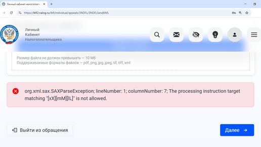 Эта ошибка org.xml.sax.SAXParseException; lineNumber: ; columnNumber: ; The processing instruction target matching "[xX][mM][lL]" is not allowed. возникает в личном кабинете налогоплательщика при загрузке файла с декларацией 3-НДФЛ Ошибка — SAXParseException — говорит о том, что файл декларации в формате XML содержит технический дефект в какой либо строке (lineNumber такой-то). Система обработки данных (парсер) ожидает увидеть стандартный XML, но натыкается на нарушение правил. Наиболее вероятные причины: 1...