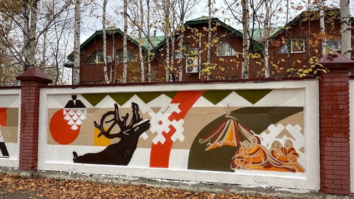 На улице Мелик-Карамова в Сургуте преобразился забор, окружающий территорию коттеджного посёлка «Березка». Более 15 бетонных плит обрели новый облик, передает корреспондент ugra-news.ru. Рисунки выполнены в едином стиле с использованием осенней цветовой гаммы. В палитре преобладают бежевые, терракотовые, коричневые, горчичные и травянисто-зеленые оттенки. Яркие акценты добавлены с помощью белого, черного и насыщенного красного цветов. Кстати, каждая плита представляет собой уникальный образ, связанный с культурой и природой Югры...