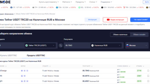 Чем активнее развивается рынок, тем актуальнее становится вопрос: где безопасно и выгодно обменять криптовалюту? Особенно если вы находитесь в столице. Именно поэтому обменник крипты в Москве — один из самых востребованных финансовых инструментов на сегодняшний день. Сейчас всё можно сделать в течение часа — достаточно найти надёжный обменник крипты в Москве, работающий с наличными или по переводу. Чтобы упростить выбор, используйте сервис Exnode — агрегатор, который подбирает лучшие предложения по курсу, формату и местоположению...