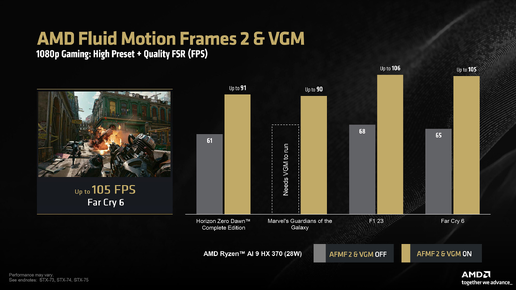 Доброго времени, господа. Пока у intel дела идут неважно, AMD продолжает развлекаться в своем стиле: делать очень хорошие APU за много денег. Этот раз - не исключение, новая графика Radeon 890M, которая не так давно появилась на рынке в составе процессора Ryzen AI 9 HX370, теперь получила еще и генератор кадров, а также функцию VGM, и теперь готова дать вызов мобильной RTX 3050. Новая встройка Radeon 890M разрослась и вширь, и вглубь. Так, у нее на 256 потоковых процессоров больше, чем у Radeon 780M...
