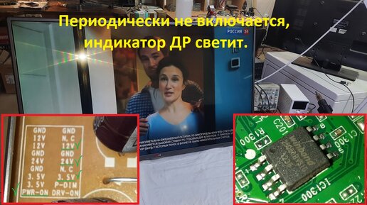 Итак, из названия понятно что ничего как обычно не ясно. Не корректно описанный дефект клиентом привёл к том что телевизор стоял разобранным в мастерской в течении 3-х дней и его периодически дёргали пультом. И только когда, очередным утром, придя на работу, увидел телевизор со светящимся индикатором ДР - заподозрилось что то не ладное. Нажатие на кнопки ПДУ не включили телик, так же как и на джойстик внизу. Т.е. ПДУ и ИК тракт не причём, но плату ИК приёмника всё равно проверил - всё чисто. Выдернул из розетки, включаю обратно - телевизор завёлся и как ни в чом не бывало стало всё работать...