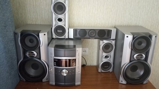 Добрый день. Немного отвлечемся от кораблей танков и прочего. Поговорим и посмотрим вот на него Сейчас таких уже не делают саб на стол не влез Ночью очень приятно смотрится включенный ...просто завораживает. Итак Музыкальный центр Панасоник 825 модель 5 колонок + сабвуфер Суммарная мощность 460 вт Да это не Hi Fi . Но звучание очень и очень достойное тюнер ручной эквалайзер , есть 6 предустановок. сенсорное управление кассетной декой и лотком для Дисков Двойная автореверсная кассетная...