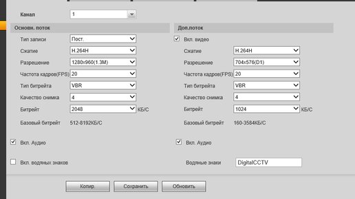 Типовая настройка видеорегистратора