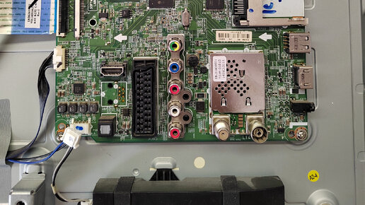 Зачем это делать и Первый шаг - добавим разъем. Пришёл ко мне в ремонт телевизор. Телевизор не включался. Дежурка была, при попытке включить светодиод гас, но телевизор не включался. Проверен блок питания, проверена подсветка, выяснено, что неисправна материнская плата. Надо менять. В наличии такая же плата, но с другими LVDS разъёмом. Принято решение заменить неисправную плату на рабочую, переставив на рабочую плату нужный "правильный" LVDS разъём. На фото ниже плата с уже переставленным разъёмом, при этом старый (тот который правее), оставлен на плате и не демонтировался, так как не мешал...