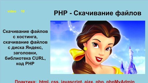 Скачивание файлов с сервера и Яндекс диска. Заголовки. Библиотека функций php – CURL. Практические задания по написанию кода на языках html, css, javascript + библиотеки, php при создании страниц сайта, а также создание и заполнение таблиц базы данных php myAdmin, обработка форм без перезагрузки страницы. Адаптация страниц сайта под мобильные устройства. Создание сайта современными способами. Rutube= https://rutube.ru/channel/35579739/