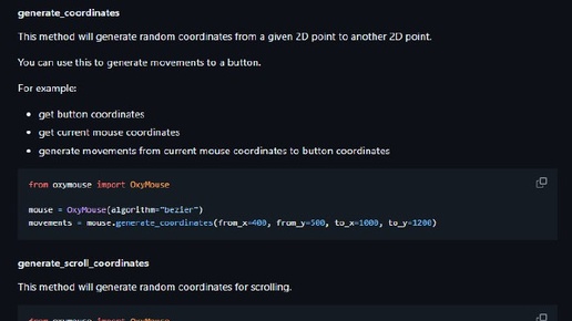 перемещений курсора для автоматизации взаимодействия с интерфейсами, например в браузерах или GUI-тестах. 📌 Основные особенности: 🔵Генерация реалистичных движений курсора мыши 🔵Построение плавных траекторий между двумя точками 🔵Создание случайных координат в пределах экрана...