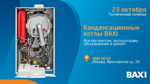 🎓 "Конденсационные котлы BAXI: все про монтаж, эксплуатацию, обслуживание и ремонт" 📢Технический семинар в НИУ МГСУ! 🔥Идёт набор группы🔥 📅 23 октября, Чт. 📍 Москва, Ярославское ш., 26 🔗 ЗАРЕГИСТРИРОВАТЬСЯ ❗️Количество мест ограничено 📧 seminar@baxi...