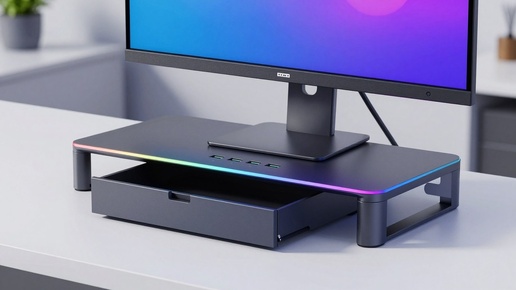 Ищете стильную и функциональную подставку для своего монитора? Тогда вы попали в нужное место! Наша подставка не только обеспечивает удобное размещение монитора, но и оснащена выдвижным ящиком для хранения необходимых мелочей. Благодаря портам USB3.0, вы сможете легко подключить свои устройства. А многоцветное светодиодное освещение добавит современный штрих к вашему рабочему месту. Этот продукт идеально подходит тем, кто ценит стильный дизайн и функциональность. Можно купить на Яндекс.Маркете, перейдя по ссылке: https://market...