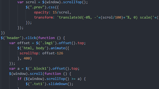 Всем привет!!! Сейчас я вам покажу самый простой способ добиться того, что-бы элемент появился на том моменте, пока кто либо сам не долистает до него. Сначала я покажу сам код, а потом объясню, как он работает. $('.txt1').slideUp(10); var a = $('.txt1').offset().top; $(window).scroll(function () { if ($(window).scrollTop() >= a) { $('.txt1').slideDown(); } }) И так... Начнём! Для начала нам нужно скрыть сам объект, для этого я взял $('.txt1').slideUp(10), где: $('.txt1') - класс нашего объекта(можно айди, если нужно) ...