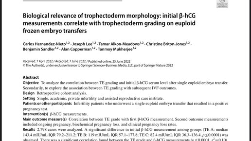 Значимость морфологии трофэктодермы: уровни β-ХГЧ коррелируют с ее качеством