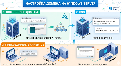 Настройка домена на Windows Server. Контроллер домена, DNS и присоединение клиентов