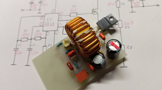 Здравствуйте ! Очередная самоделка , сегодня преобразователь напряжения из 12-ти вольт , до 33в . В основном эту схемку предлогают для зарядки ноутбука в автомобиле , но применение можно найти не только для зарядки . Есть стабилизация выходного напряжения при плавающем входного . Выходное напряжение регулируется подстроечным резистором R7 . Диод поставил BYW29EX , транзистор PO903B , дроссель с ИБП 25витков диаметром 1...