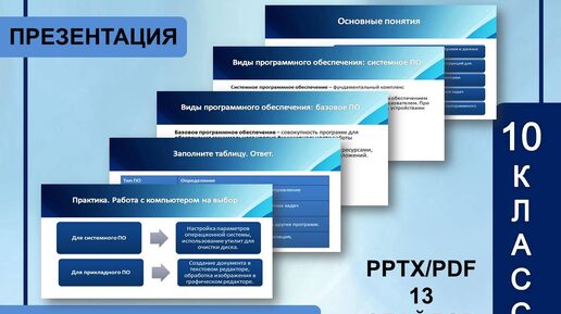 Новая презентация по информатике «Программное обеспечение компьютера» для 10 класса — это готовый цифровой урок! Внутри вас ждет: ✔️ Четкая классификация: системное, прикладное, системы программирования. ✔️ Яркие схемы и иконки для лучшего запоминания...