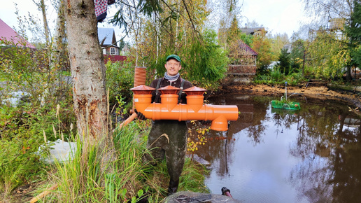 Наконец-то сделал пожарный водозабор из нашего пруда с рыбками. Пруд изначально задумывался как водоём для нужд пожаротушения. Однако с забором воды через пожарные рукава имелись проблемы. Берег у нас сложный, покатый и рыхлый, большой пожарной машине не подъехать. К тому же уровень воды нестабильный, на дне много ила. Ещё в пруду плавают любимые рыбки! Не хотелось бы, чтобы их засосало в цистерну пожарной машины. Поэтому я решил сделать специальный приёмный колодец. Самый удачный день для осуществления задуманного сложился в первых числах октября...