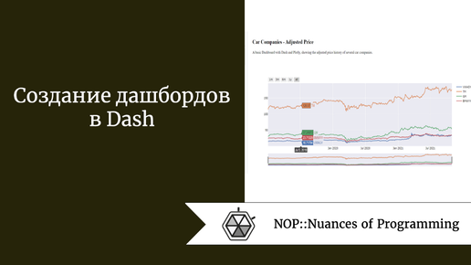 Источник: Nuances of Programming Дашборды — это быстрый и эффективный способ визуализации и мониторинга данных. С Plotly и Dash процесс создания дашбордов на Python максимально упростился. Этот материал поможет вам выяснить, чем полезны дашборды. Вы узнаете о том, как создать базовый дашборд с помощью Dash, Plotly, Python, а также как настроить макет с помощью CSS. Данные, используемые для дашборда в этой статье, являются общедоступными скорректированными ценами акций нескольких автомобильных компаний, собранными с помощью API Alpha Vantage...