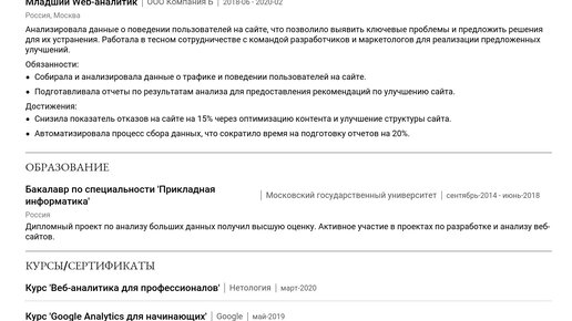 Пример резюме web-аналитика 2025 - Готовые примеры