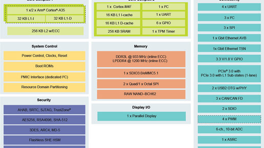 Компания NXP Semiconductors анонсировала процессор i.MX 8XLite, предназначенный для использования прежде всего в устройствах промышленного Интернета вещей (IIoT) и платформах V2X, которые призваны обеспечить обмен информацией между автомобилями, другими участниками дорожного движения и инфраструктурой. Изделие может содержать одно или два ядра Arm Cortex-A35 с тактовой частотой до 1,2 ГГц. Предусмотрено также вспомогательное ядро Arm Cortex-M4F для выполнения операций в режиме реального времени. Возможно использование оперативной памяти DDR3L-1866 и LPDDR4-2400...