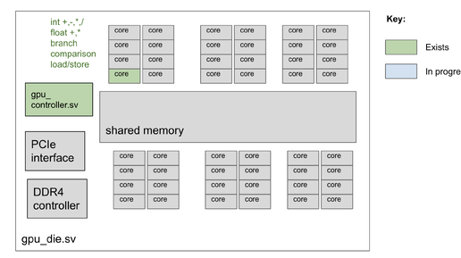 Проект VeriGPU нацелен на создание открытого GPU, развиваемого на языке описания и моделирования электронных систем Verilog. Изначально проект разрабатывается с использованием симулятора Verilog, но после доведения до готовности сможет использоваться для производства реальных чипов. Наработки проекта распространяются под лицензией MIT. VeriGPU позиционируется как специализированный процессор (ASIC), оптимизированный для ускорения вычислений, связанных с системами машинного обучения. В планах...