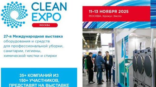 В «Крокус Экспо» в Москве 11-13 ноября 2025 г пройдет флагманская выставка оборудования и средств для профессиональной уборки, санитарии, гигиены, химической чистки и стирки - CleanExpo Moscow 2025. В выставке примут участие 150 компаний, 35 из них представят продукцию для химчисток и прачечных. В разделе «Оборудование и средства для химической чистки и стирки» 35 российских и зарубежных производителей, официальных дистрибьюторов и поставщиков представят посетителям весть спектр современного оборудования...