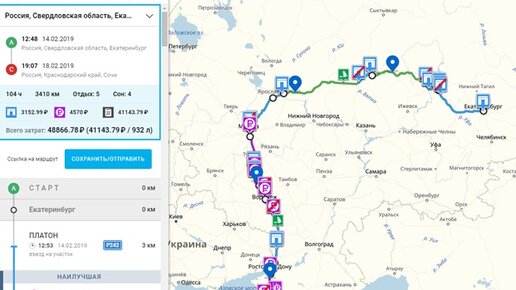 Решаемые задачи: Планирование маршрута Расчет геометрии маршрута Учет ограничений дорожных знаков для грузового транспорта Расчет расстояний Общая длинна маршрута Расстояние между промежуточными точками Расчет промежуточных населенных пунктов (ориентиров) в зависимости от настоек Расчет характеристик трасс и номеров километровых столбов (ориентиры трасс) Расчет площадок отдыха для остановки Расчет стоянок или мотелей для ночевки Расчет времени в пути учетом РТО (Время за рулем, Время на отдых, Время...