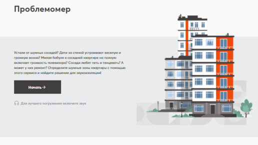 Если сделать звукоизоляцию, нужно посчитать: какие материалы использовать, сколько их потребуется и во сколько они обойдутся. Мы сделали сервисы, которые сделают расчеты за вас. Они будут полезны и ремонтным бригадам, которые профессионально занимаются звукоизоляцией, и обычным пользователям, которые хотят все сделать своими руками. Проблемомер Что делает: определяет, каким зона нужна звукоизоляция (пол, потолок, стена, перегородка) и какие материалы надо использовать. Подбирает готовое решение из ассортимента StP...