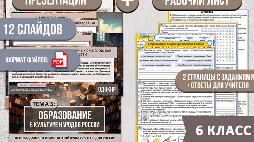 Комплект ОДНКНР «Образование в культуре народов России» 6 класс | Презентация + рабочий лист