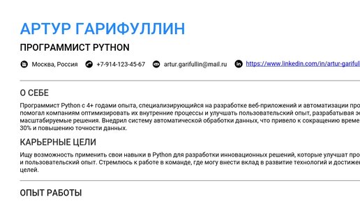 Пример резюме ведущего программиста Python 2025 - Как составить