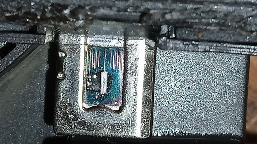 Итак, аккуратно произвел "вскрытие" датчика. Микроскопа и лупы под рукой не оказалось, но в принципе, напрягшись, можно увидеть посторонние частички на элементе. Черное пятно слева не сулило особо не чего хорошего. В общем осциллографа дома нет, решил попробовать спиртом с помощью мягкой кисточки отмыть датчик...