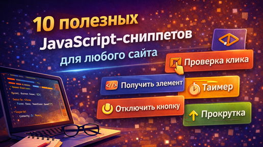 На самом деле, 80% задач на сайте решаются одними и теми же простыми приёмами. В этой статье я собрал 10 JavaScript-сниппетов, которые: Что происходит: Без этого не работает ни один интерактив. Этот код говорит браузеру: «Когда пользователь нажмёт на кнопку — выполни действие»...