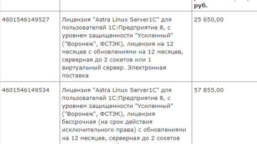 Лицензии на продукты "Astra Linux Server1C("Воронеж") для 1С:Предприятие 8" не облагаются НДС.Обращаем внимание, что по позиции 460154614953